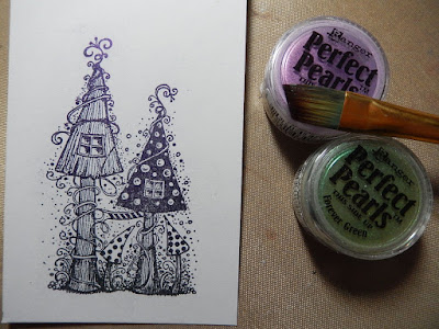 Het elfje en de paddenstoelen zijn met Perfect Pearls bewerkt.