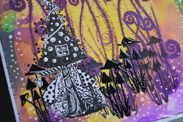 VerwijderenSabine, this is the most clever card! I love your MAGIC mushrooms and that beautiful, beautiful, BEAUTIFUL background! I sure wish I were a butterfly on your craftroom wall when you made this; I'm still trying to figure out that white circle die cut withe the frond/mushroom forest hidden beneath...is that attached somehow to the tag? Thank you SO much for sharing this in our Get in the Action challenge at Frilly and Funkie! Hugs!